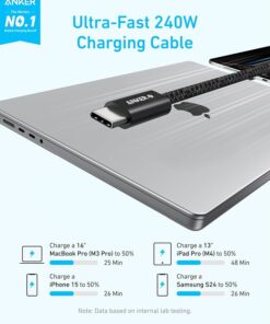 - Full-Speed 240W Charging: Charges a 16-inch MacBook Pro (M3) to 50% in just 25 minutes and a 13-inch iPad Pro (M4) in 48 minutes, suitable for a range of powerful devices.Anker Zolo USB-C to USB-C CableÂ