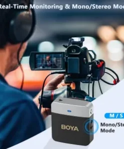 - 【Real-Time Monitoring & Mono/Stereo Output】 The receiver’s 3.5 mm headphone jack can be plugged into headphones for real-time monitoring. Mono and stereo output can be switched as required for easy post-production audio editing.