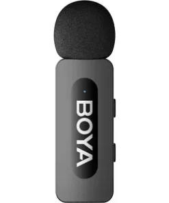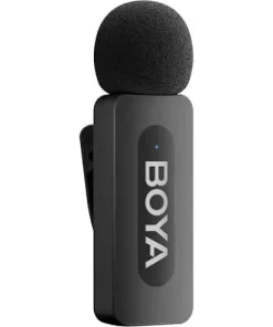 The upgraded BOYA BY-V30 2-Person Wireless Microphone System is designed to improve audio quality in vlogs and interviews with two subjects using a compatible mobile device. Included with the system are two compact clip-on transmitters with built-in omnidirectional microphones and a dual-channel plug-in USB-C receiver unit, which connects directly to your mobile device. Using the built-in 2.4 GHz wireless frequency, the components can communicate from up to 328′ away. Onboard button controls on the transmitters toggle mute and one-click noise cancellation for clear audio capture. The system also includes foam windscreens, USB-A to USB-C charging cable, and a charging case to store and replenish the components.