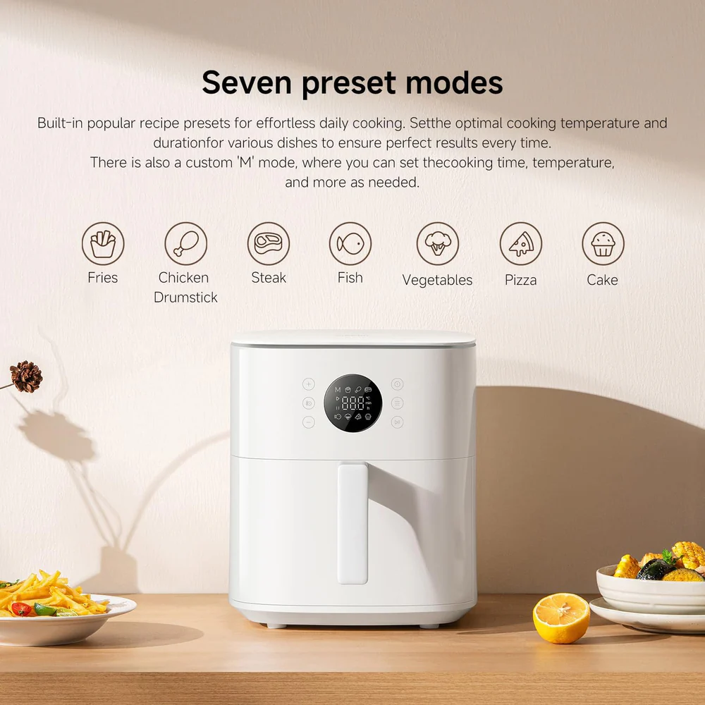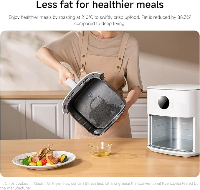 The Xiaomi Smart Air Fryer 6.5L is built for versatile, everyday cooking, supporting air frying, baking, yogurt making, dried fruit, defrosting, and fermentation in one powerful smart appliance.